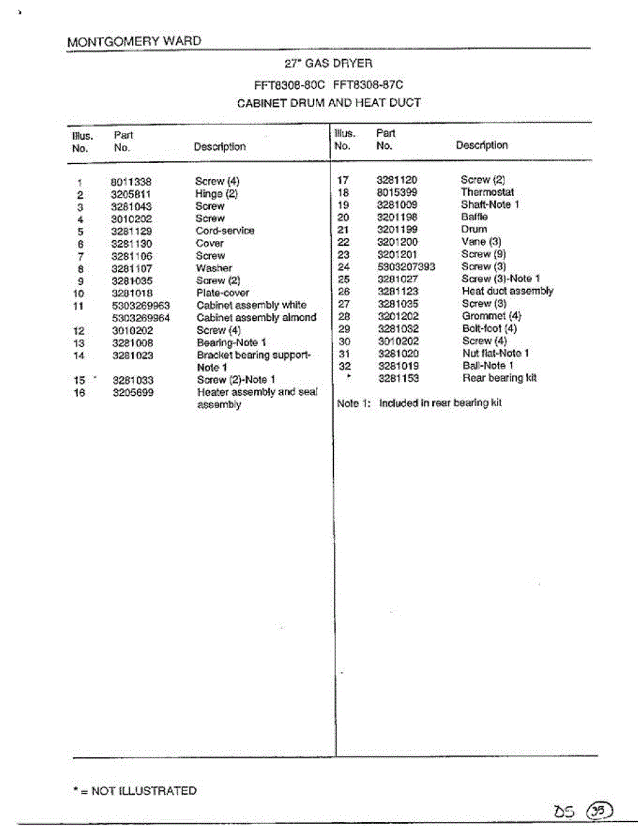 Dryer drum bearing ball ensures smooth drum rotation. Replace if drum wobbles, squeaks, or won't turn. Confirm fit with your model number before ordering.