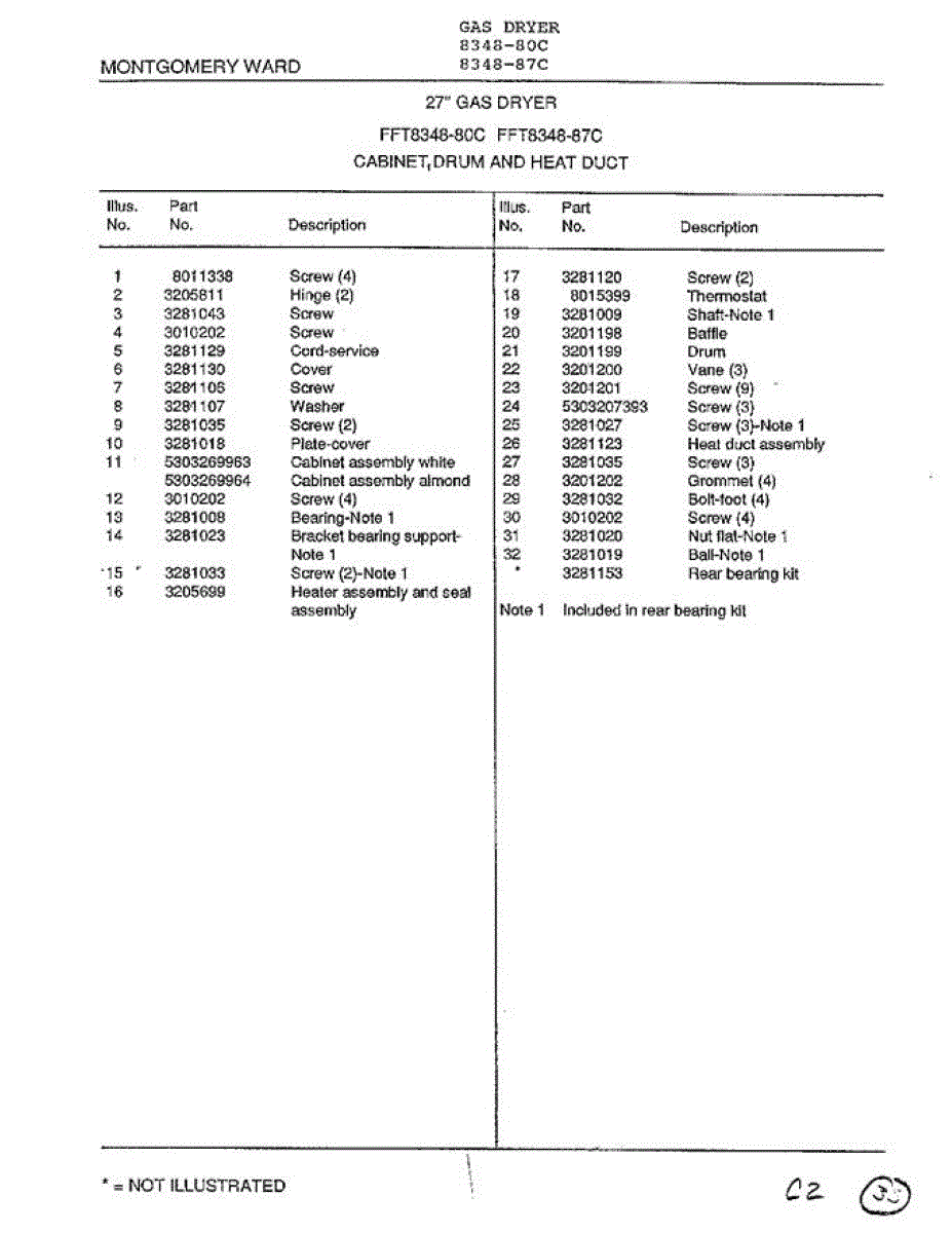 Parts for Frigidaire 8348-87C: Cabinet, Drum And Heat Duct Page 2 Parts