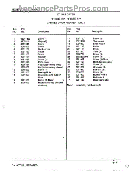 Parts for Frigidaire 8389-80A: Cabinet Drum And Heat Duct Page 2 Parts