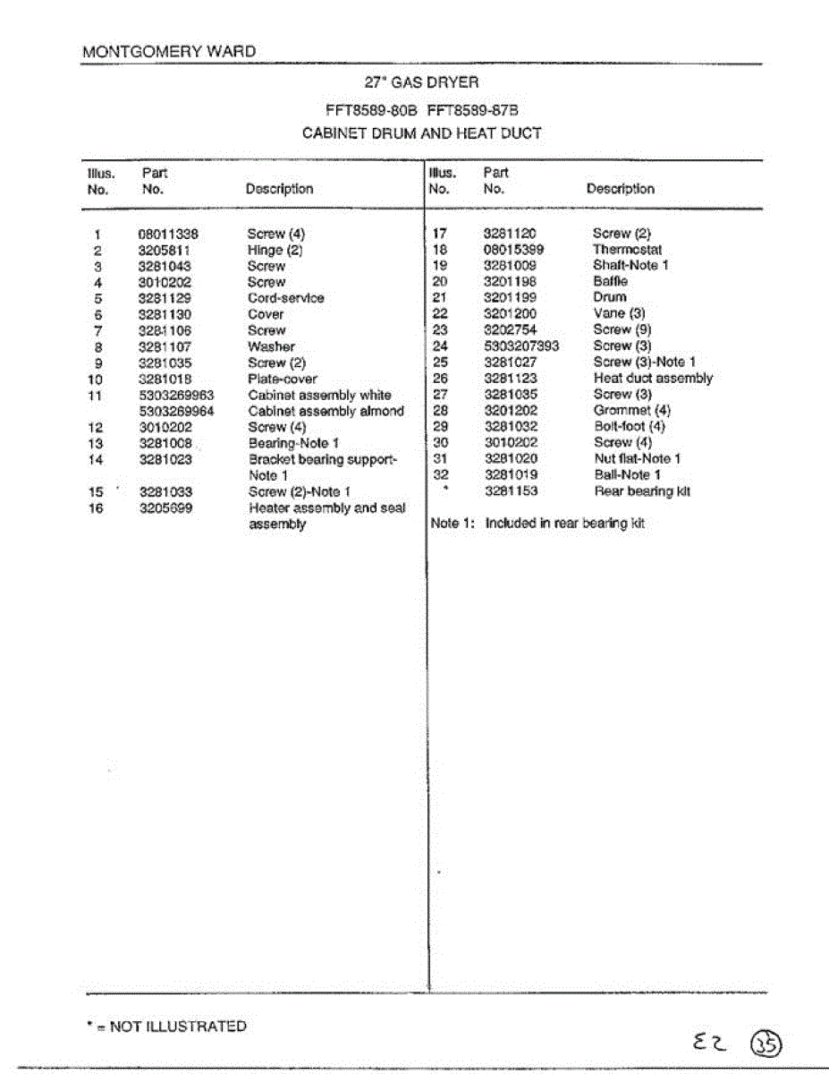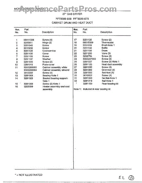 Dryer drum bearing ball ensures smooth drum rotation. Replace if drum wobbles, squeaks, or won't turn. Confirm fit with your model number before ordering.