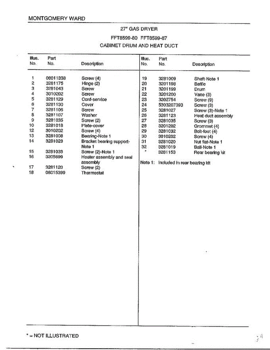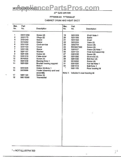 Parts for Frigidaire 8599-87: Cabinet Drum And Heat Duct Page 2 Parts