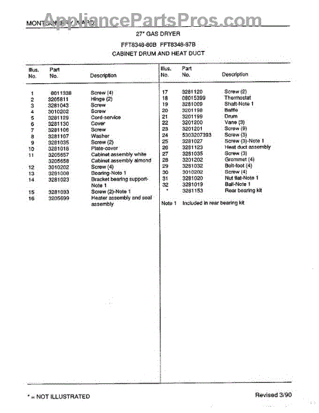 This replacement screw secures appliance panels and components to restore proper fit and reduce movement. It's a simple, direct fix when small fasteners are missing, worn, or stripped and panels sit loose or rattle. What it does: