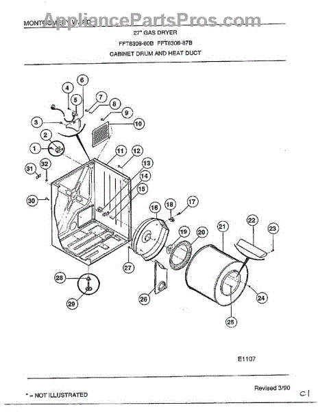 Parts for Frigidaire 7308B: Cabinet Drum And Heat Duct Parts