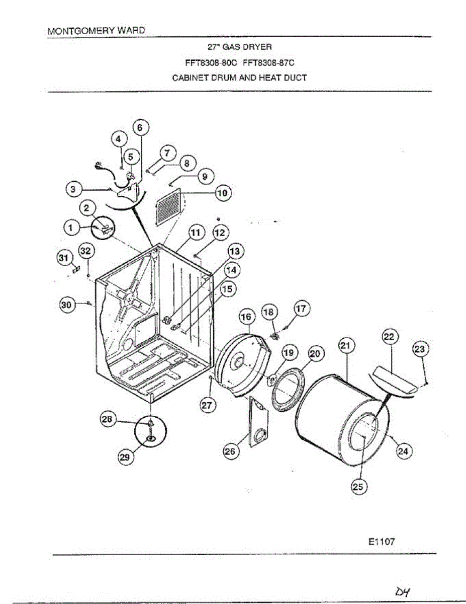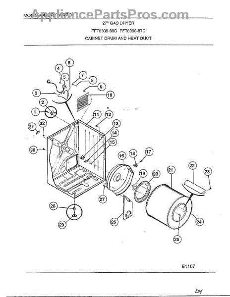Parts for Frigidaire 8308-80C: Cabinet Drum / Heat Duct Parts