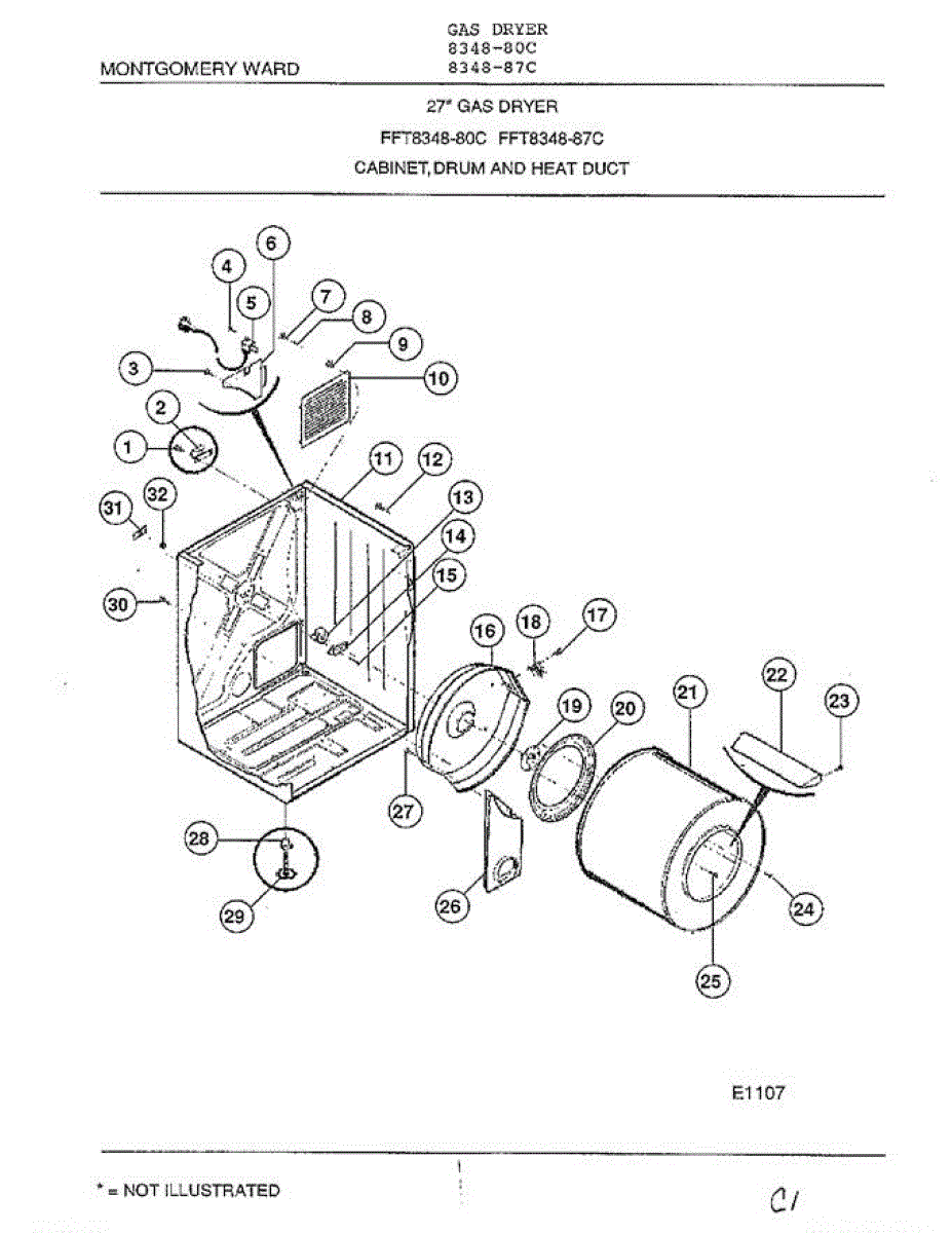 Parts for Frigidaire 8348-80C: Cabinet, Drum And Heat Duct Parts