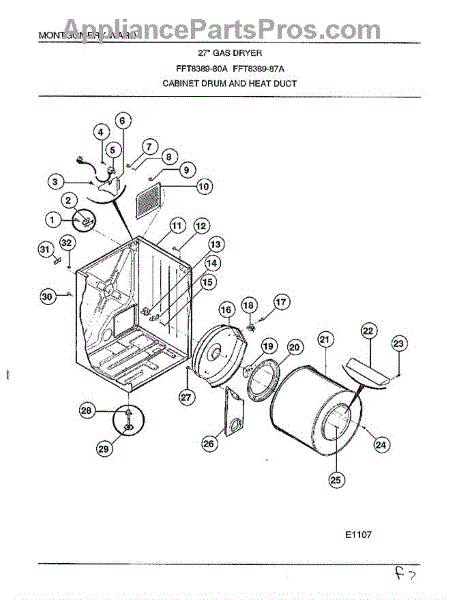 Parts for Frigidaire 8389-80A: Cabinet Drum And Heat Duct Parts
