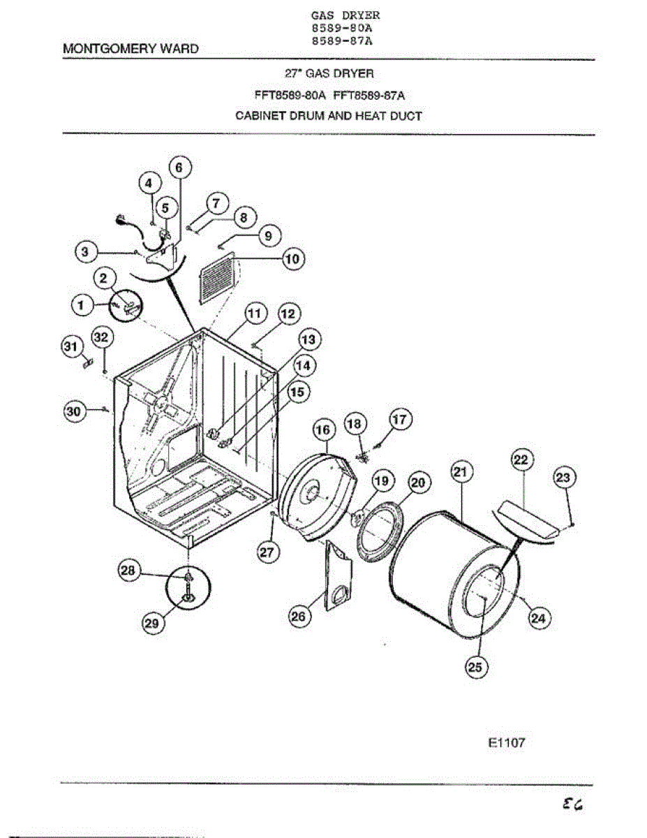 Sems screw for dryers. Secures internal components and panels. Replace if screw is stripped, missing, or no longer holding parts firmly in place.