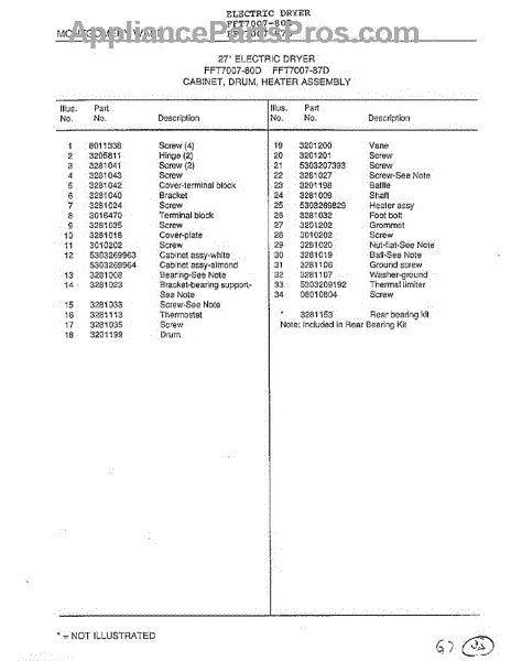 The Drum Bearing Bracket is an OEM replacement part for Frigidaire dryers. It holds and supports the drum bearing, which allows the dryer drum to spin smoothly during the tumbling and drying cycle. Causes of failure can be cracking or breaking of the bracket over time due to constant use and stress. Improper installation that puts strain on the bracket may also lead to issues. Symptoms of a bad drum bearing bracket include: