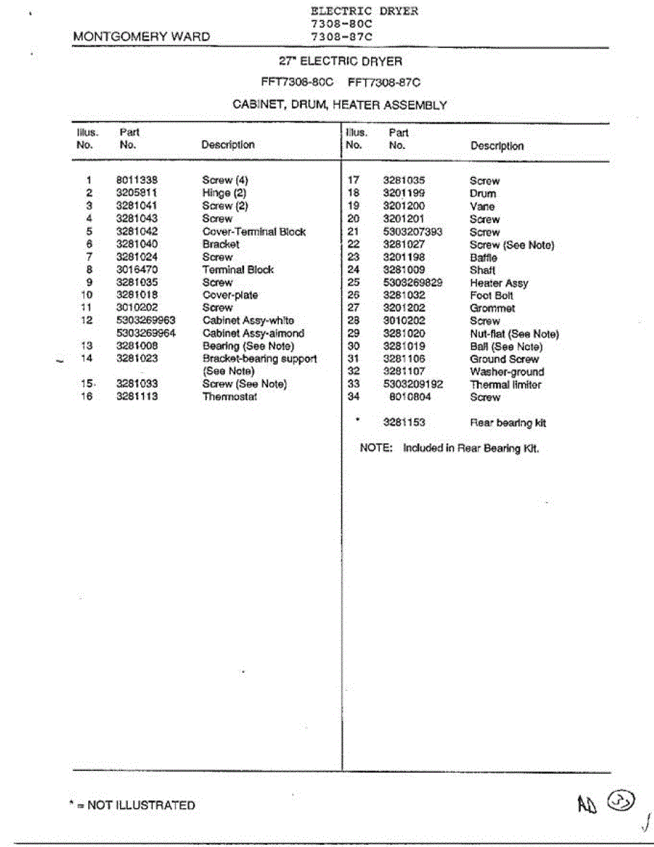 Parts for Frigidaire 7308-80C: Cabinet, Drum, Heater Assembly Page 2 Parts