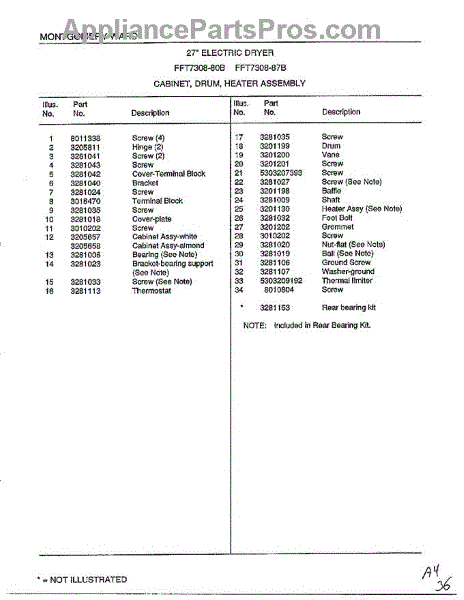 Parts for Frigidaire 7308B: Cabinet, Drum, Heater Assembly Page 2 Parts