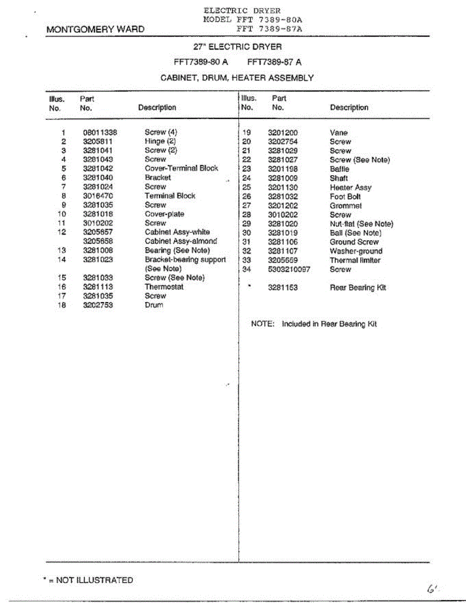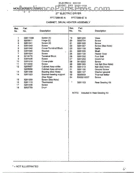 Parts for Frigidaire 7389-80A: Cabinet, Drum, Heater Assembly Page 2 Parts