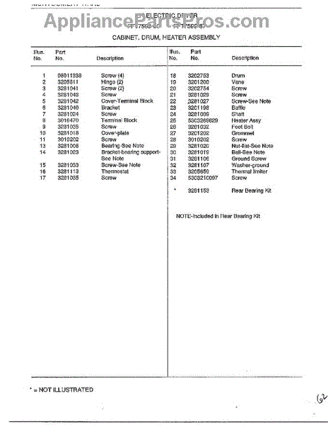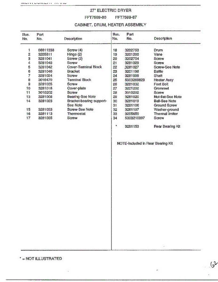 Parts for Frigidaire 7599-80: Cabinet, Drum, Heater Assembly Page 2 Parts