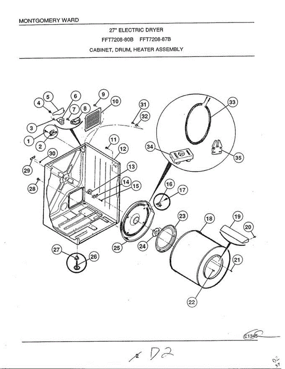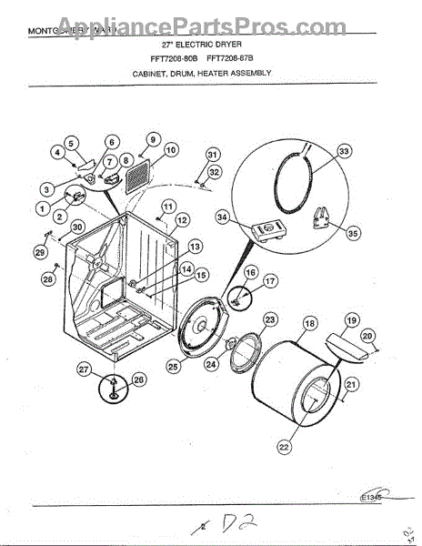 Parts for Frigidaire 7208B: Cabinet / Drum / Heater Assembly Parts