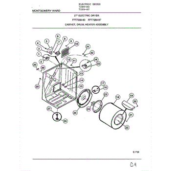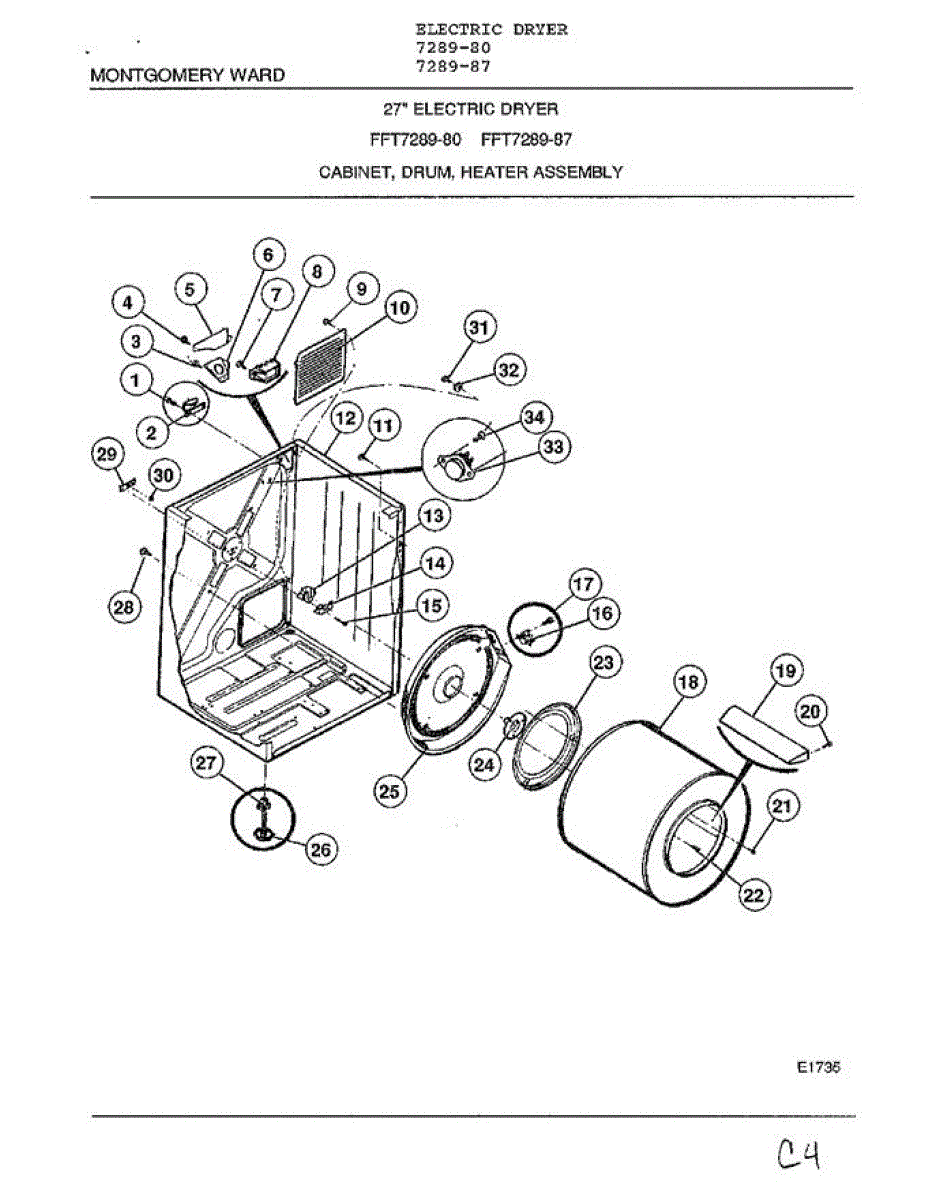 Parts for Frigidaire 7289-80: Cabinet, Drum, Heater Assembly Parts