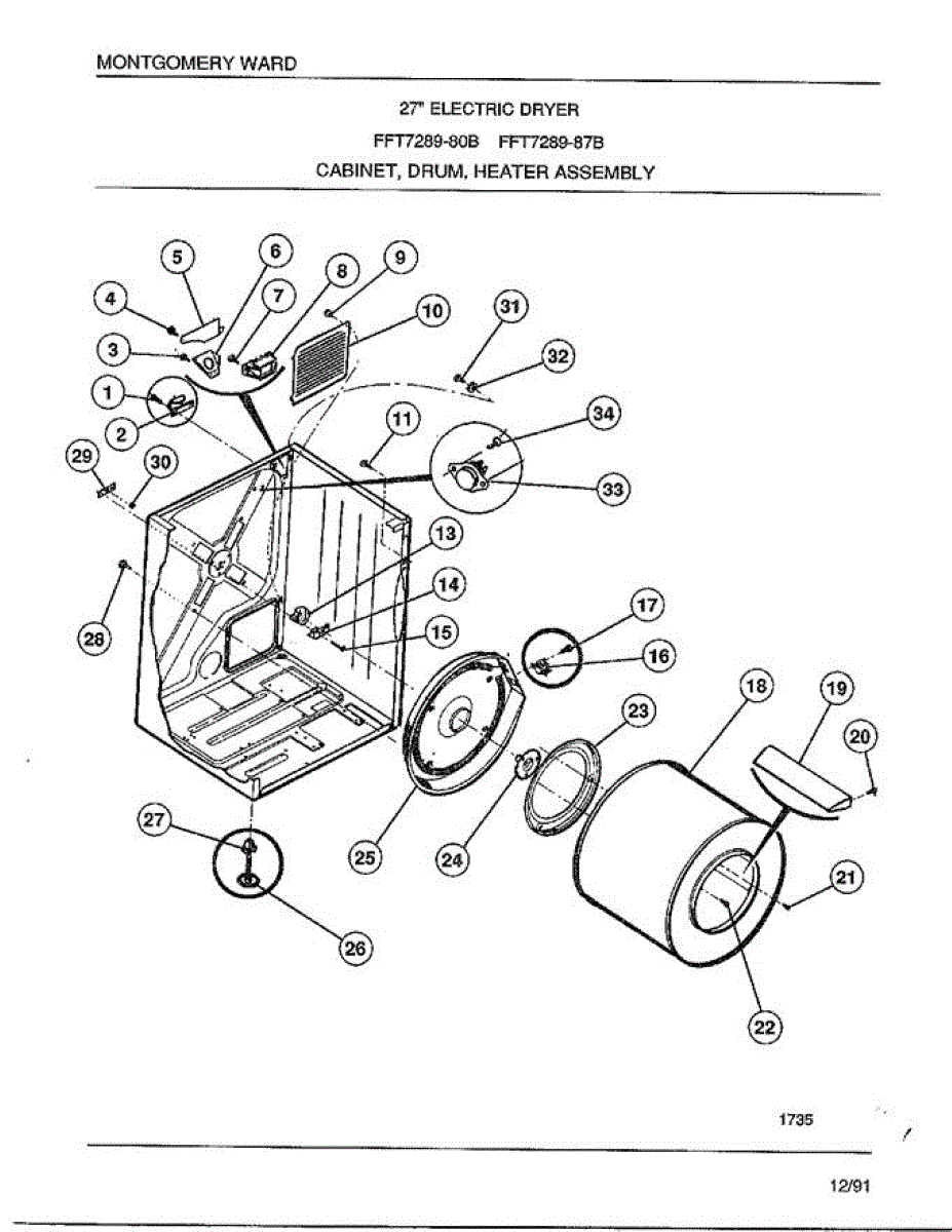 Parts for Frigidaire 7289-80B: Cabinet / Drum / Heater Assembly Parts