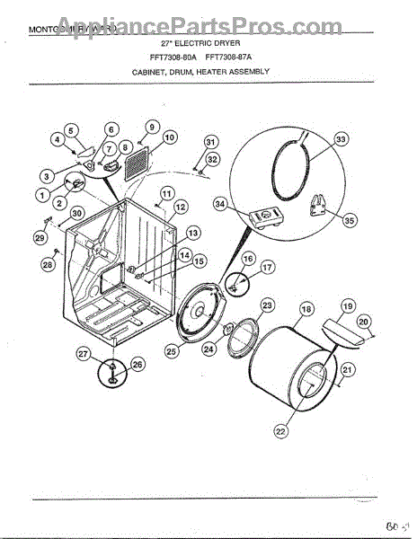 The Drum Bearing Bracket is an OEM replacement part for Frigidaire dryers. It holds and supports the drum bearing, which allows the dryer drum to spin smoothly during the tumbling and drying cycle. Causes of failure can be cracking or breaking of the bracket over time due to constant use and stress. Improper installation that puts strain on the bracket may also lead to issues. Symptoms of a bad drum bearing bracket include: