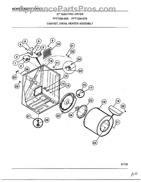 Parts for Frigidaire 7338B: Cabinet, Drum, Heater Assembly Parts