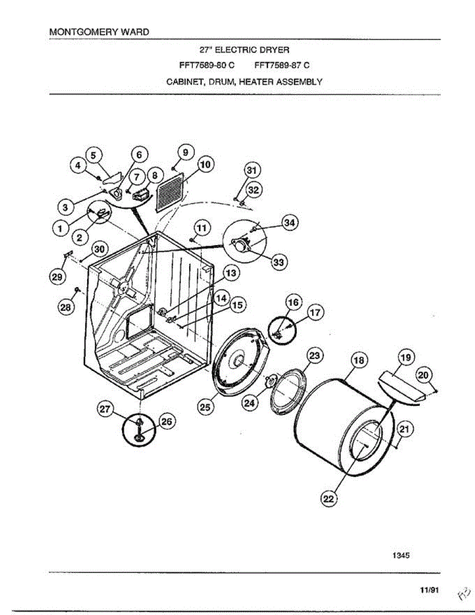 Parts for Frigidaire 7589-87C: Cabinet / Drum / Heater Assembly Parts