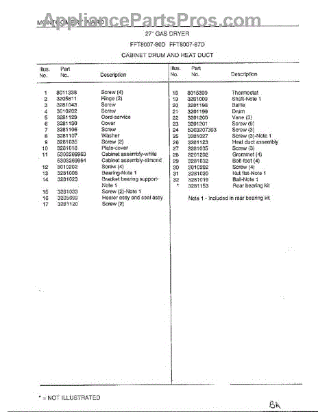 Parts for Frigidaire 8007-80D: Cabinet Drum / Heating Duct Page 2 Parts