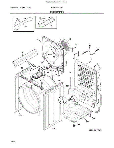 This insulator is a small foam/trim piece that cushions and thermally isolates appliance panels to help maintain proper airflow and reduce vibration. It preserves fit between cabinet components for quiet, efficient operation. What it does: