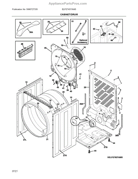 The Roller Wheel Assembly is an OEM part for Frigidaire dryers. It is designed to support the dryer drum and facilitate its smooth rotation during the drying cycle.
