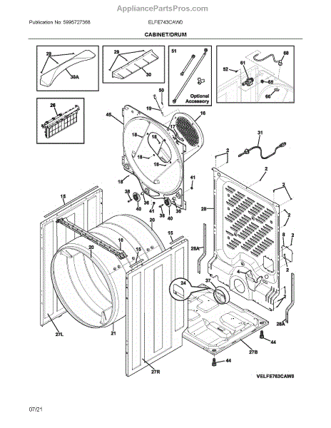 The Leveling Leg is an OEM part for Frigidaire dryers. It adjusts to stabilize the dryer on uneven floors during operation.