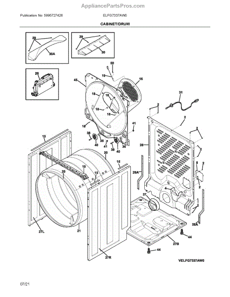 The Leveling Leg is an OEM part for Frigidaire dryers. It adjusts to stabilize the dryer on uneven floors during operation.