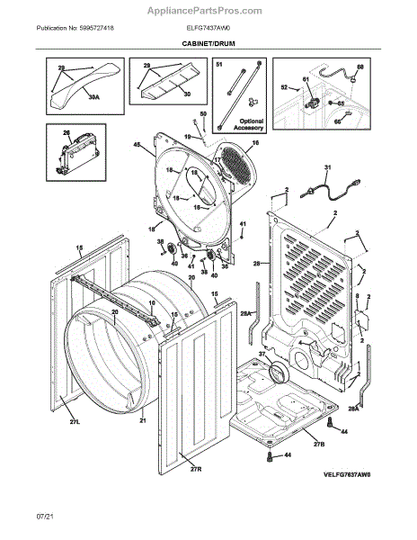 Parts for Electrolux ELFG7437AW0: Cabinet / Drum Parts