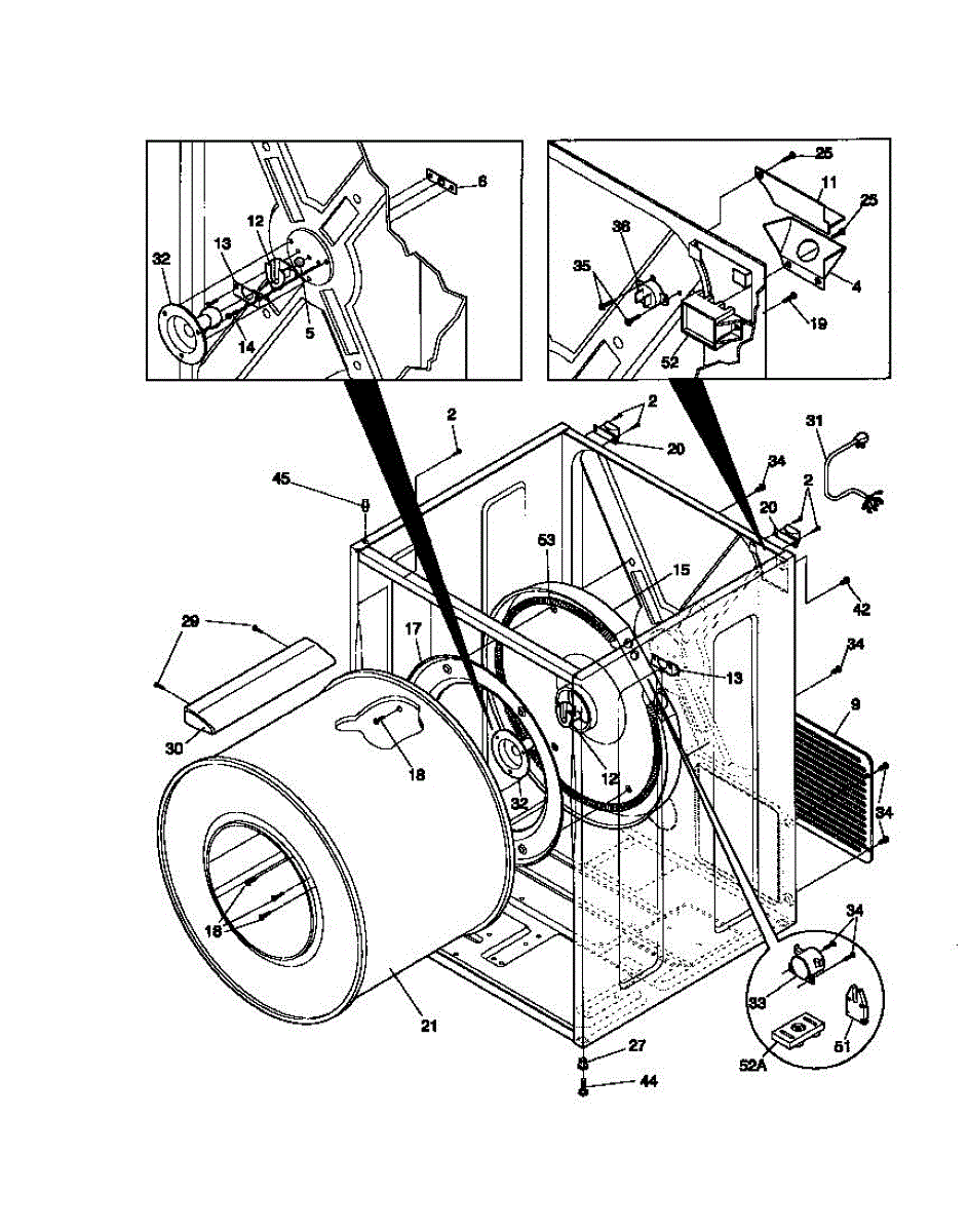 The Rear Drum Bearing Kit is an OEM replacement part for Frigidaire dryers. It contains a set of parts responsible for supporting the rear end of the dryer drum, allowing it to rotate smoothly and efficiently during the drying cycle.