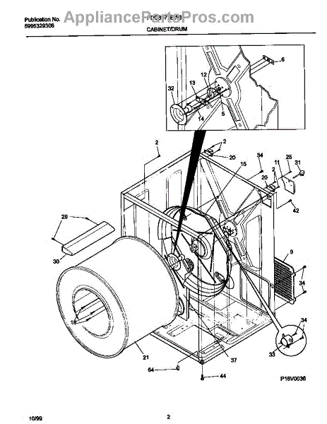 The Drum Bearing Bracket is an OEM replacement part for Frigidaire dryers. It holds and supports the drum bearing, which allows the dryer drum to spin smoothly during the tumbling and drying cycle. Causes of failure can be cracking or breaking of the bracket over time due to constant use and stress. Improper installation that puts strain on the bracket may also lead to issues. Symptoms of a bad drum bearing bracket include: