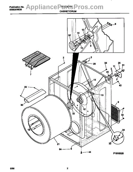The Drum Bearing Bracket is an OEM replacement part for Frigidaire dryers. It holds and supports the drum bearing, which allows the dryer drum to spin smoothly during the tumbling and drying cycle. Causes of failure can be cracking or breaking of the bracket over time due to constant use and stress. Improper installation that puts strain on the bracket may also lead to issues. Symptoms of a bad drum bearing bracket include: