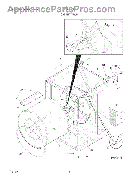 The Drum Bearing Bracket is an OEM replacement part for Frigidaire dryers. It holds and supports the drum bearing, which allows the dryer drum to spin smoothly during the tumbling and drying cycle. Causes of failure can be cracking or breaking of the bracket over time due to constant use and stress. Improper installation that puts strain on the bracket may also lead to issues. Symptoms of a bad drum bearing bracket include: