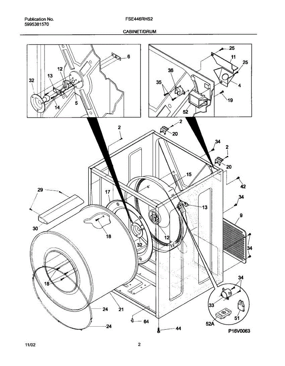 Front bulkhead drum assembly for dryers. Replaces cracked, damaged, or worn drum fronts that cause clothes to snag or tear during drying cycles.