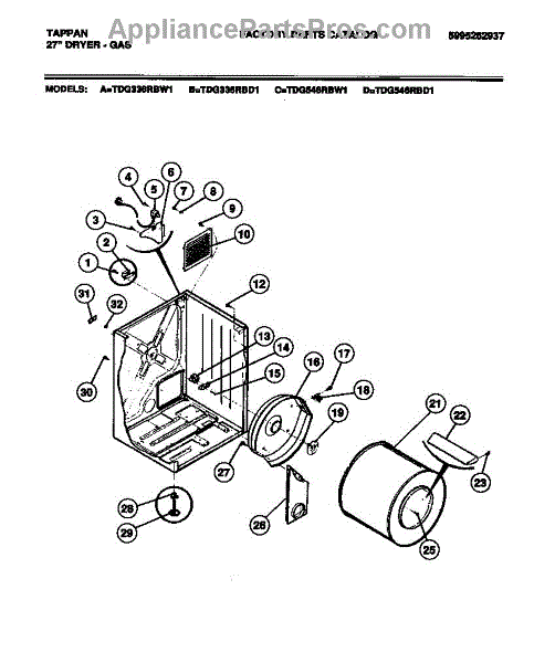 Parts for Frigidaire TDG336RBD1: 02 - Cabinet, Drum Parts