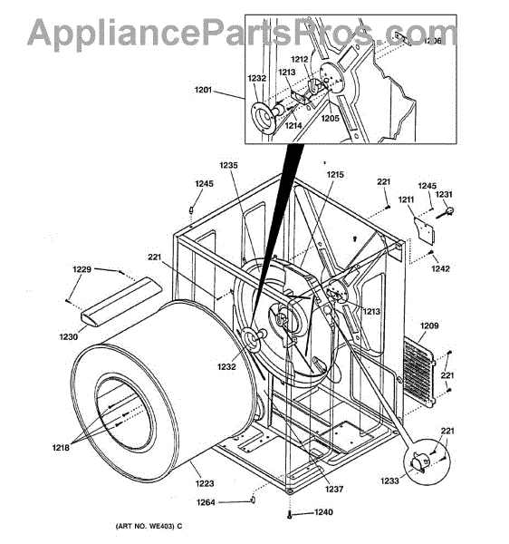 Parts for Ge DBL333GA0WW: 03 - Cabinet & Drum Parts