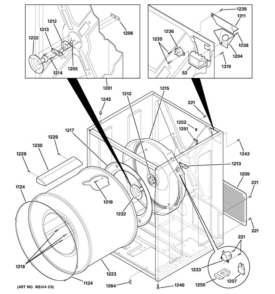 Over time, the drum support bearing may wear out or become damaged due to the constant friction and heat generated during the dryer's operation.