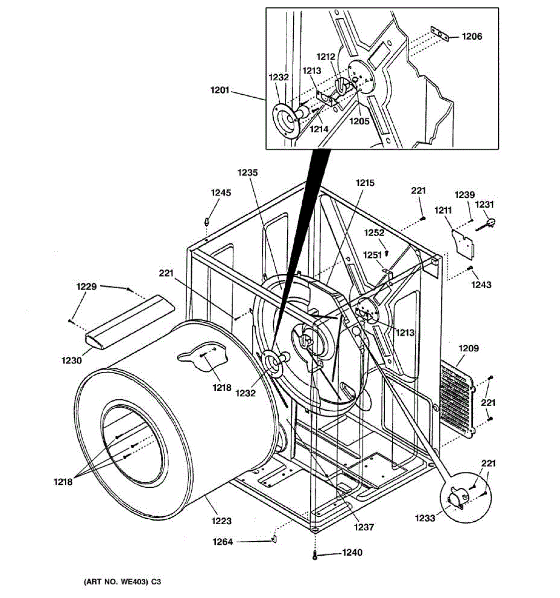 Over time, the drum support bearing may wear out or become damaged due to the constant friction and heat generated during the dryer's operation.