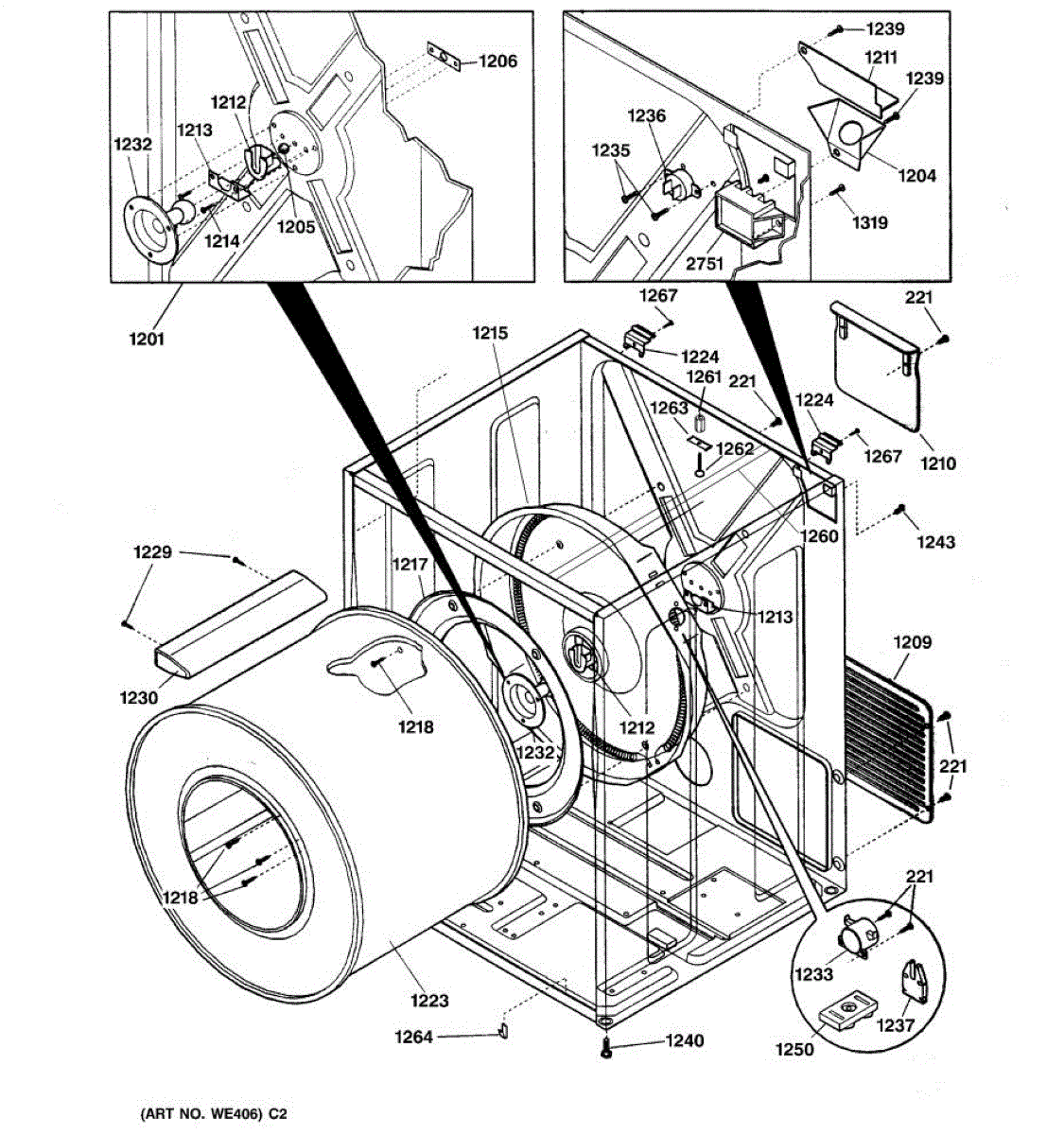 Over time, the drum support bearing may wear out or become damaged due to the constant friction and heat generated during the dryer's operation.