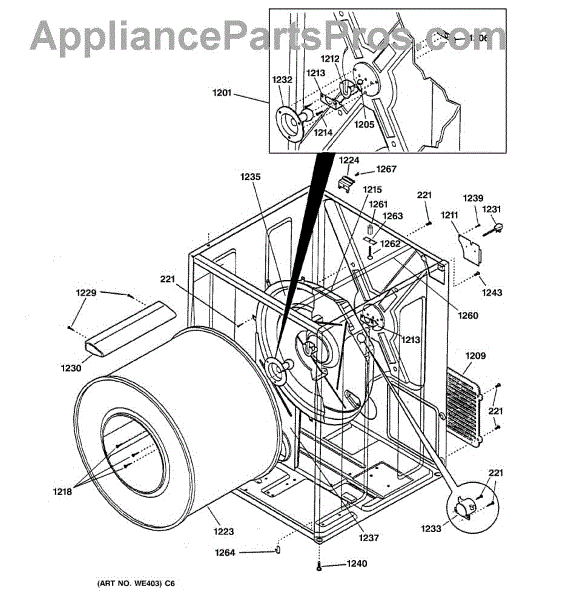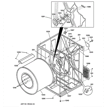The Rear Drum Bearing Kit is an OEM part for GE dryers. The kit includes a rear bearing, shaft support, ball shaft, ball bearing, ball bearing retainer, high-temperature lubricant, and screws required for installation.