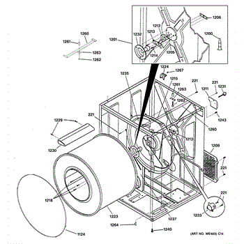 The Rear Drum Bearing Kit is an OEM part for GE dryers. The kit includes a rear bearing, shaft support, ball shaft, ball bearing, ball bearing retainer, high-temperature lubricant, and screws required for installation.