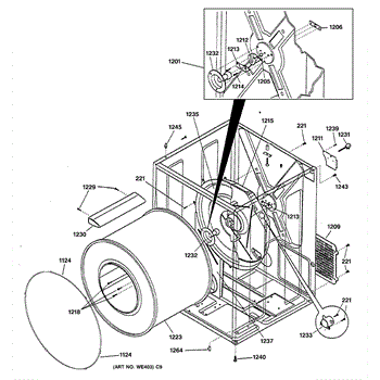 The Rear Drum Bearing Kit is an OEM part for GE dryers. The kit includes a rear bearing, shaft support, ball shaft, ball bearing, ball bearing retainer, high-temperature lubricant, and screws required for installation.
