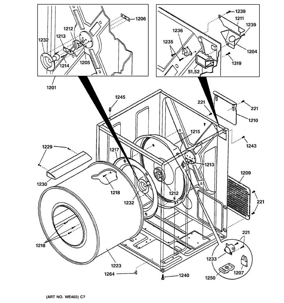Over time, the drum support bearing may wear out or become damaged due to the constant friction and heat generated during the dryer's operation.