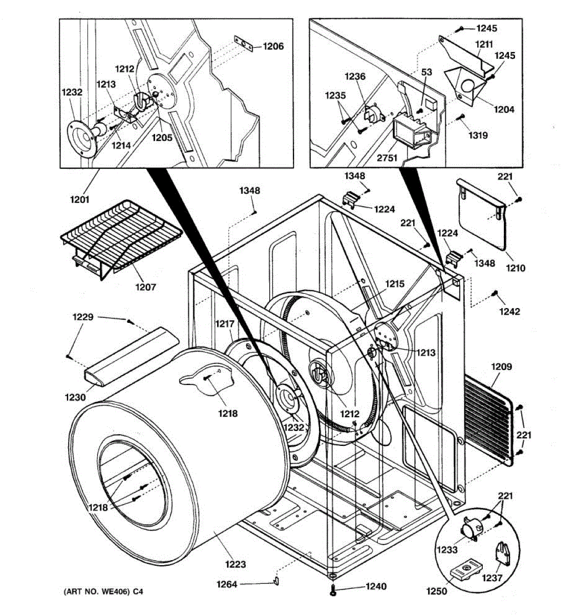 Over time, the drum support bearing may wear out or become damaged due to the constant friction and heat generated during the dryer's operation.