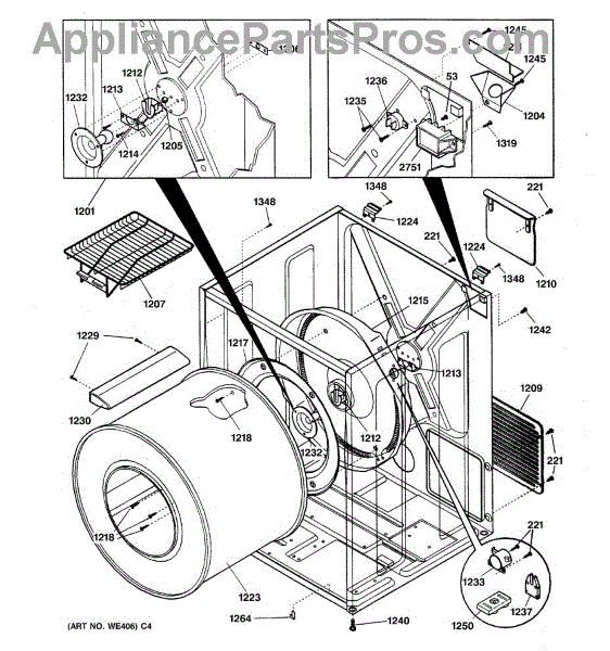 Parts for Ge DPXH46EA0WW: 03 - Cabinet & Drum Parts
