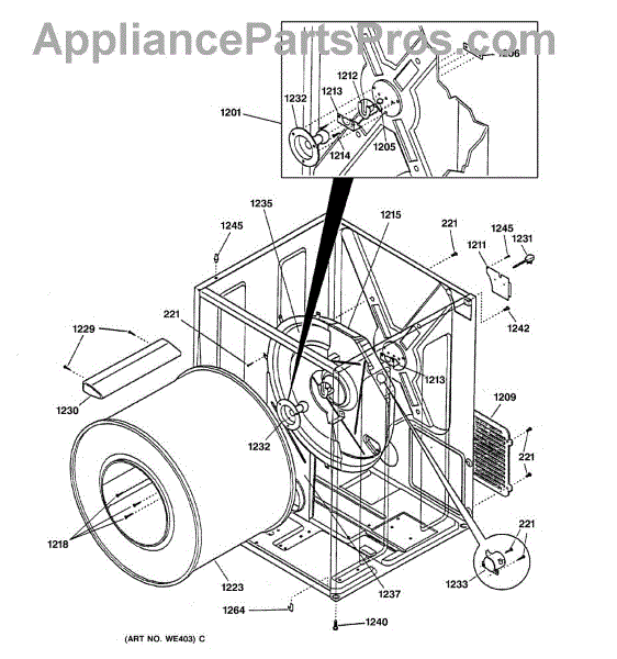 Parts for Ge DVL223GY0AA: 03 - Cabinet & Drum Parts