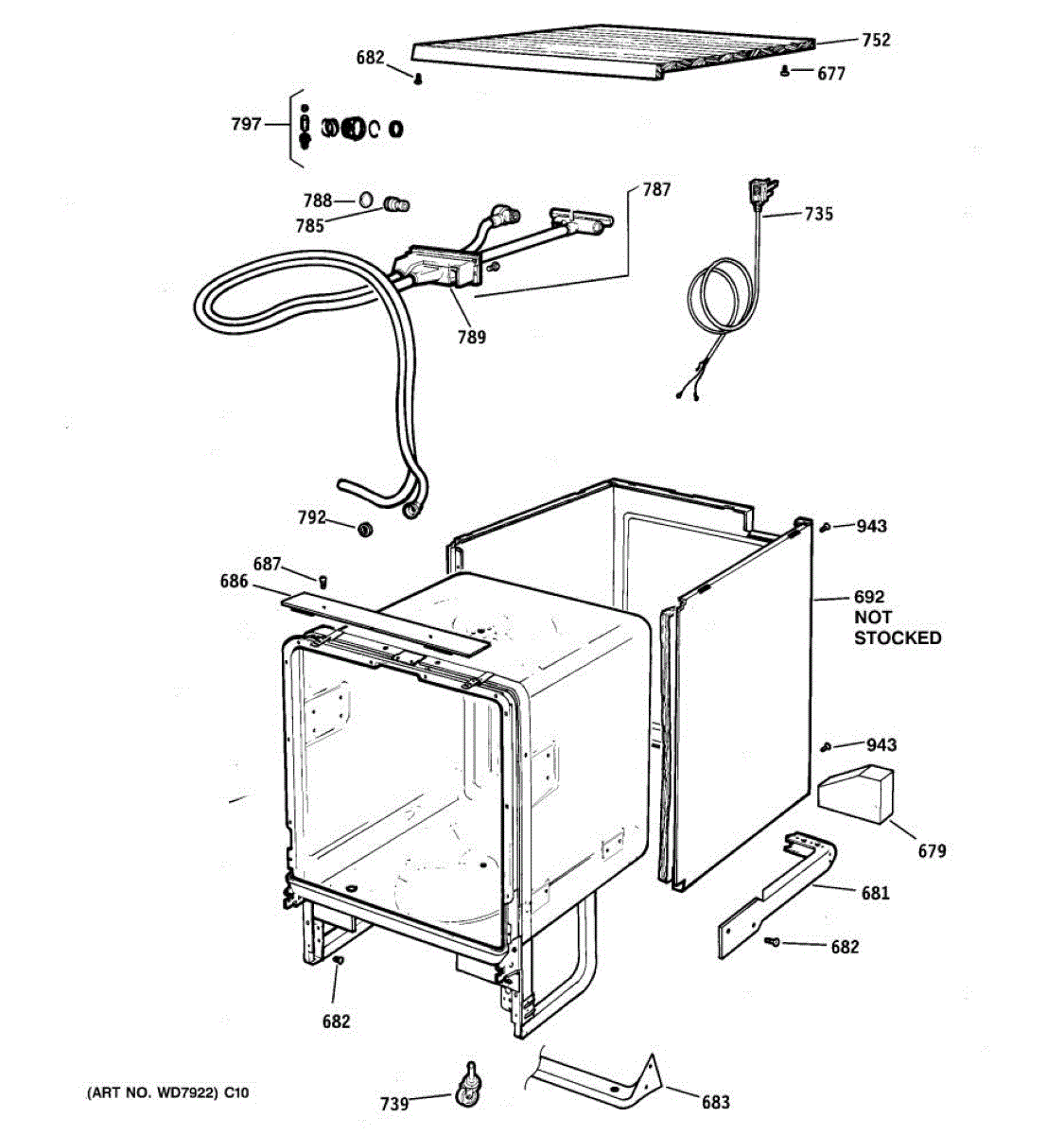 Parts for Ge GSC3400J00BB: 04 - Cabinet & Exterior Parts
