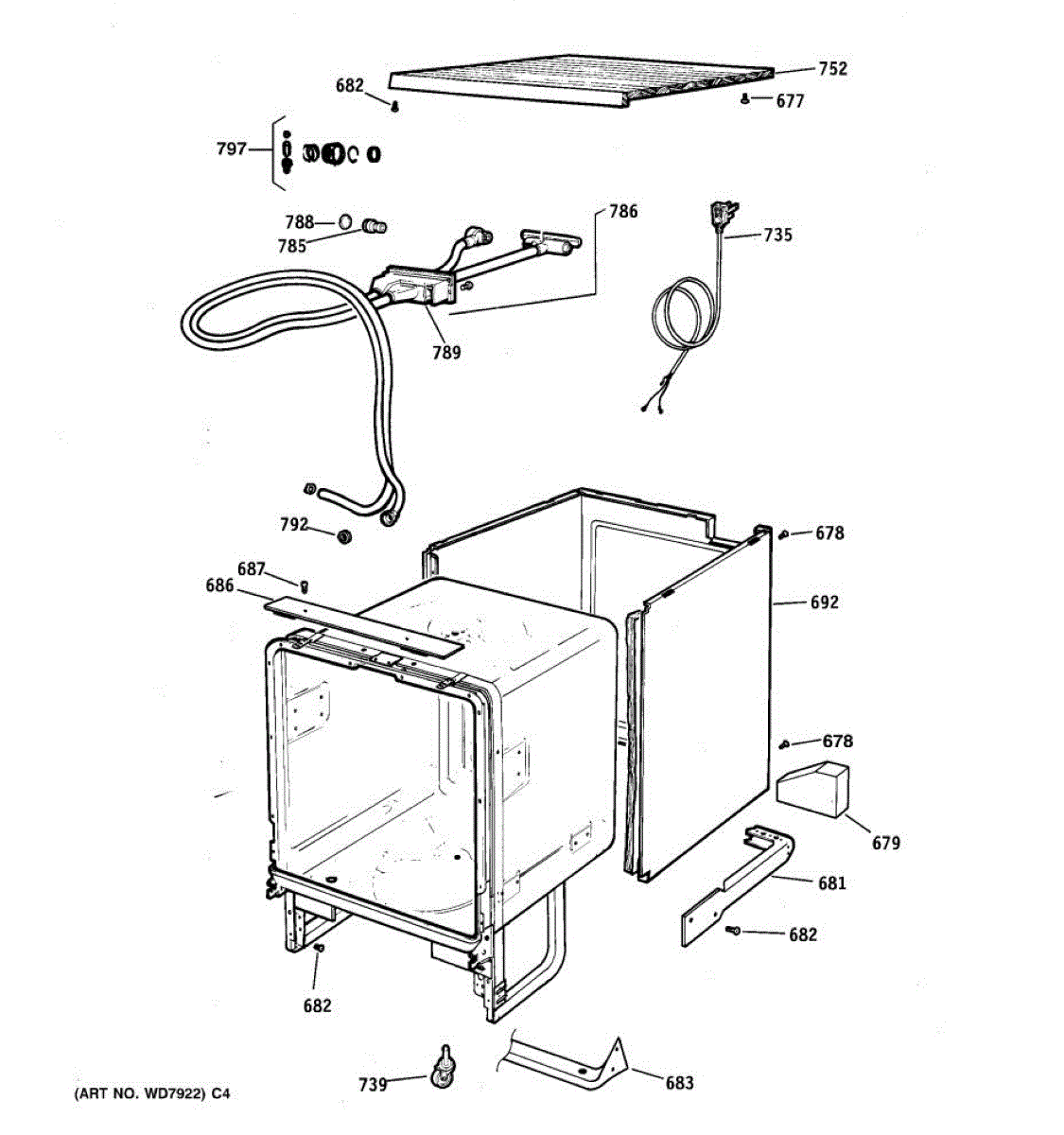 Rear mounting bracket secures your dishwasher's internal components. Replace if cracked, bent, or broken to restore proper structural support.