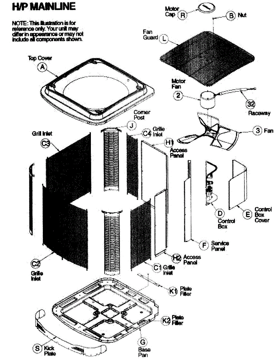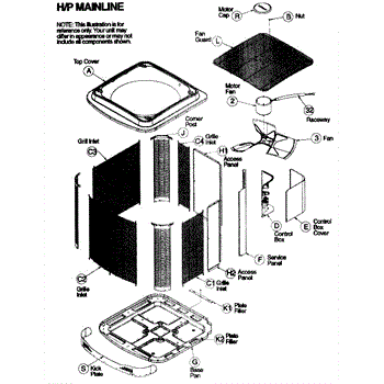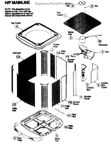 Parts for Icp H2H342GKB100: Cabinet / Fan / Motor Parts