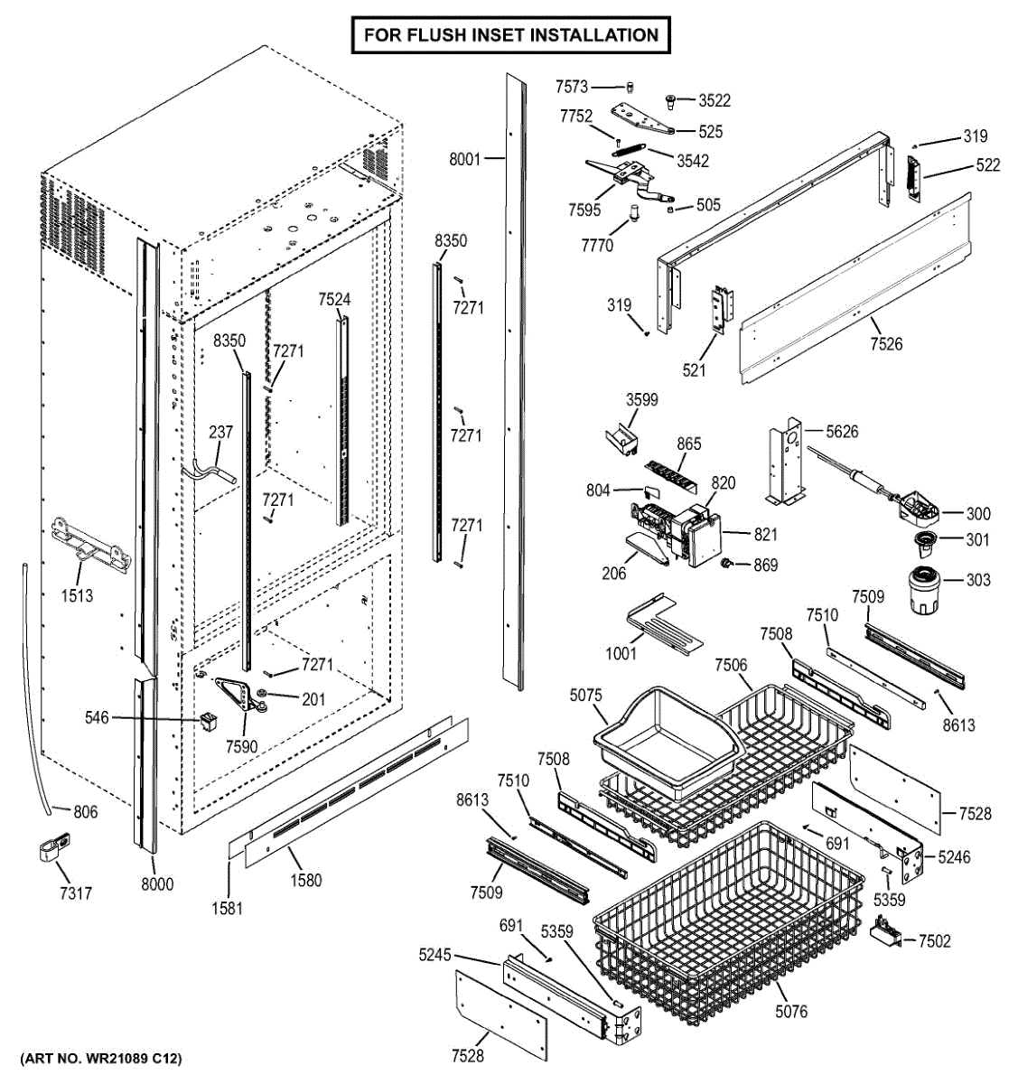 Closure assembly panel for bottom-mount refrigerators. Replaces cracked, broken, or missing closure panels that damage the unit's appearance or structure.