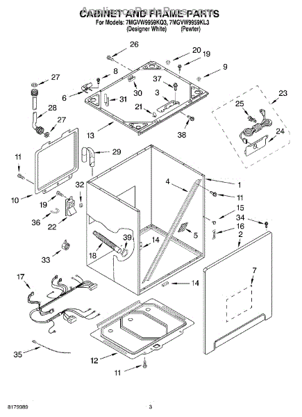 This factory screw secures appliance components to their mounting points. Replace missing, worn, or stripped hardware to restore a tight fit, proper alignment, and quieter operation across the affected assembly.